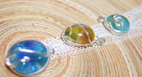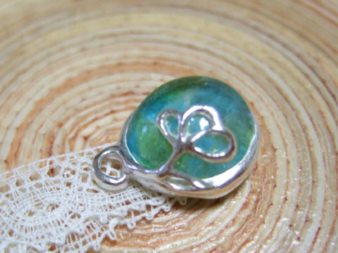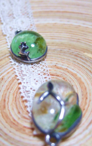 左が人用、右がドール用のガラス&シルバーのペンダント