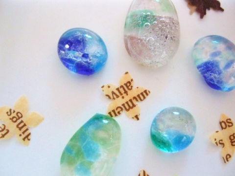 緑と水色の森ぽいガラスには、鳥を乗せてみましたよ(笑)
