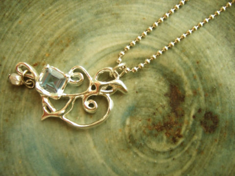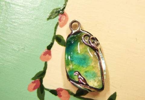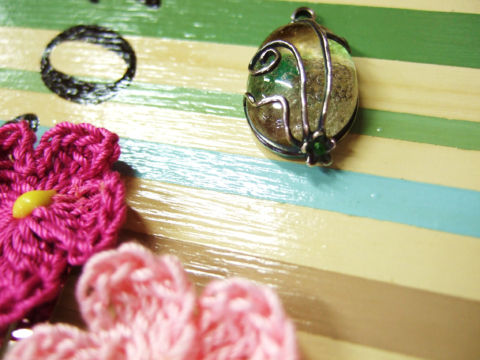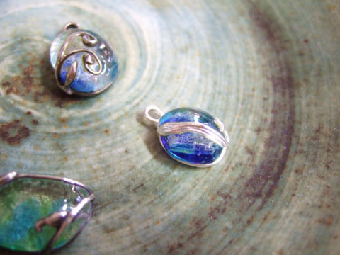 前の記事に載せていたガラスを銀粘土でペンダントに仕上げたので、早速アップしました~。