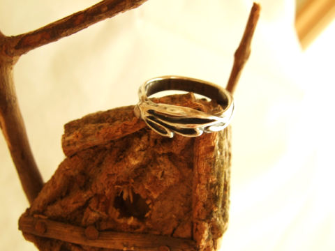 翼をモチーフにした透かしぽいシルバーリングです。